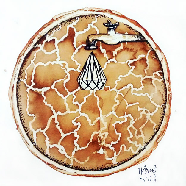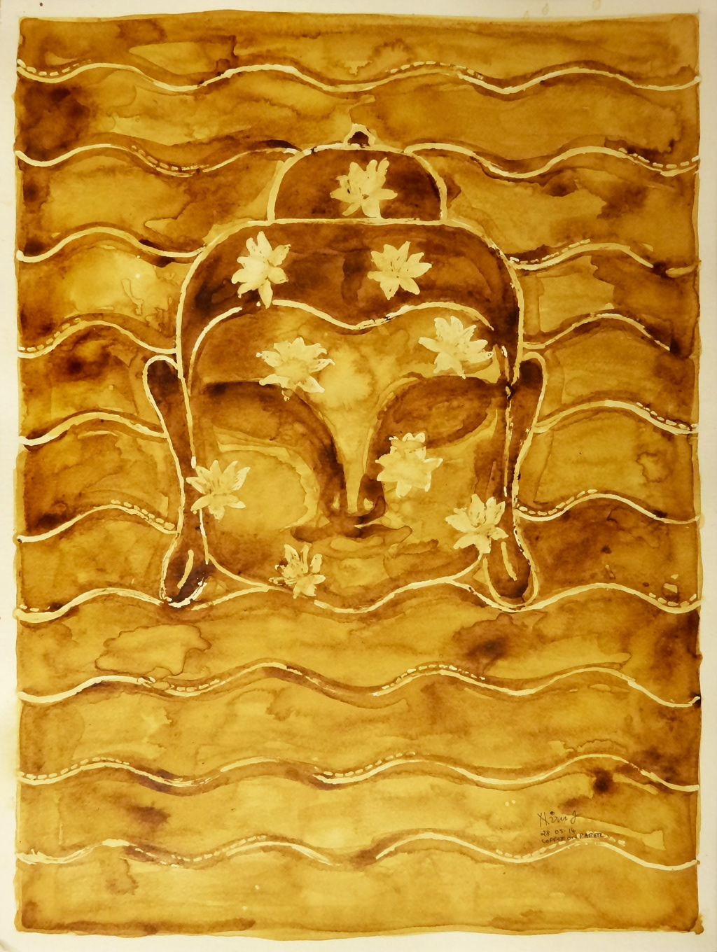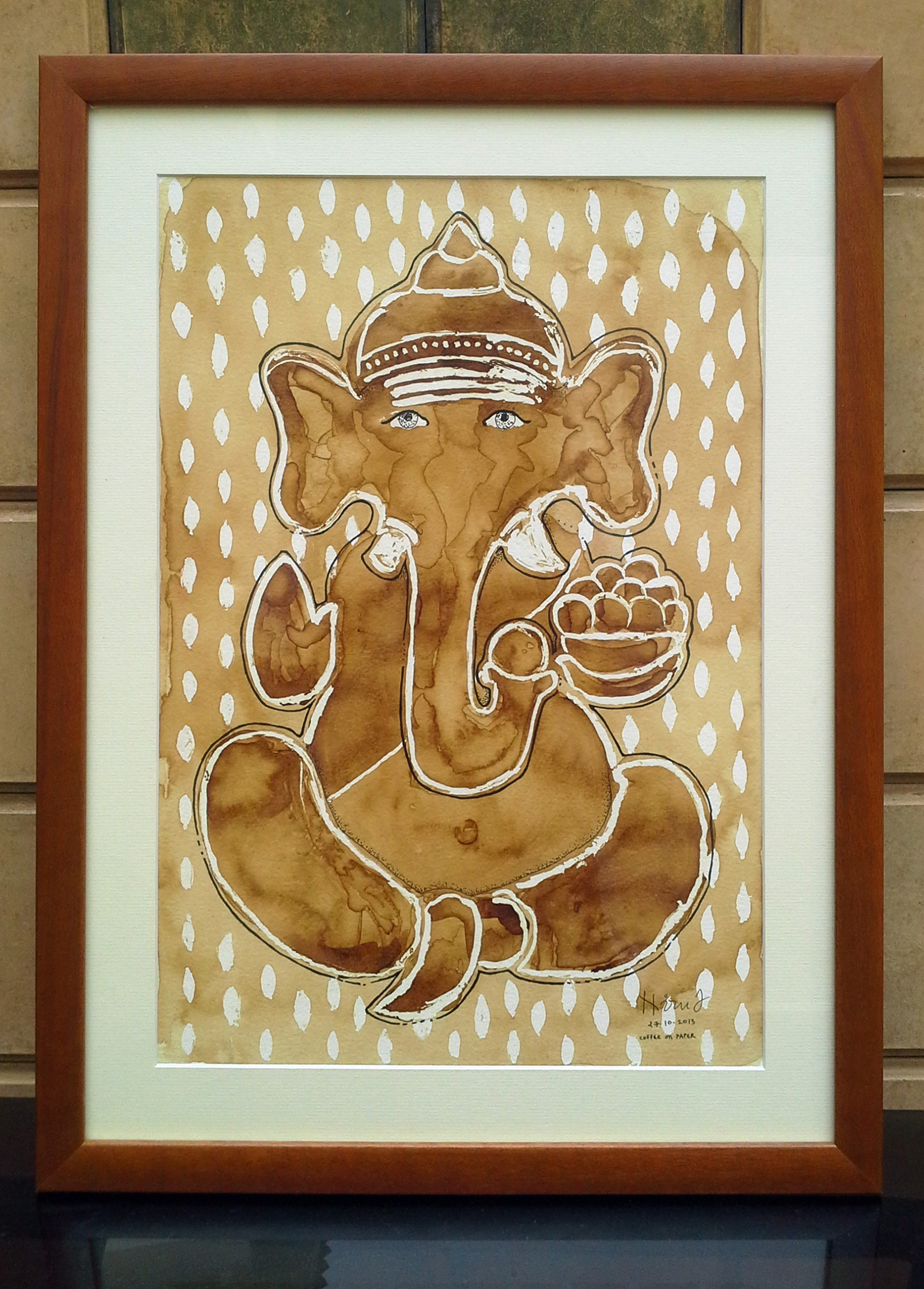 Patterns and paintings made with used coffee grounds, seeking functionality in that which is considered trash.