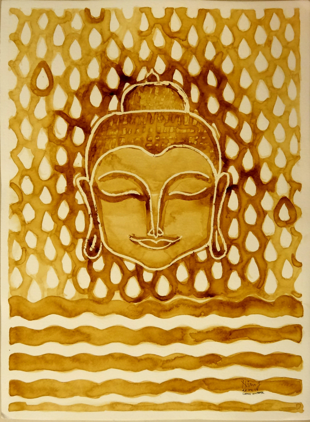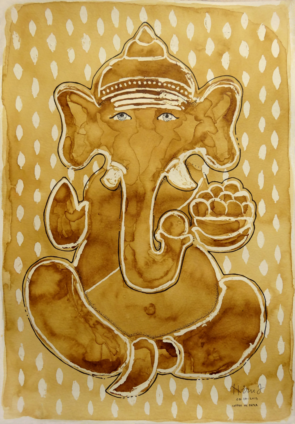 Coffee, pen and ink on watercolour paper